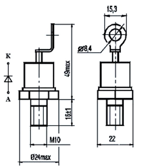 У диодов прямой полярности анодом является корпус, обратной полярности - жесткий вывод.