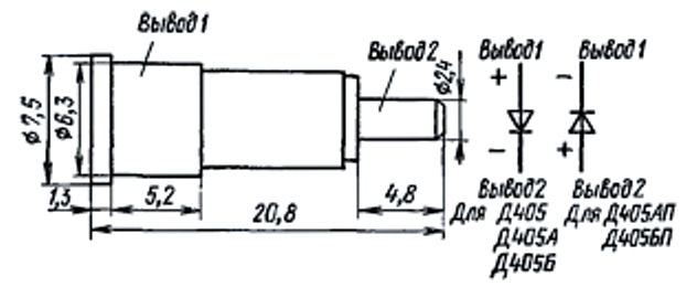 Диоды прямой полярности: Д405, Д405А, Д405Б.