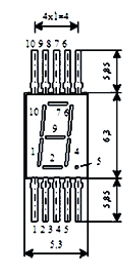 Индикатор имеет семь сегментов и децимальную точку, излучающих свет при прохождении прямого тока.