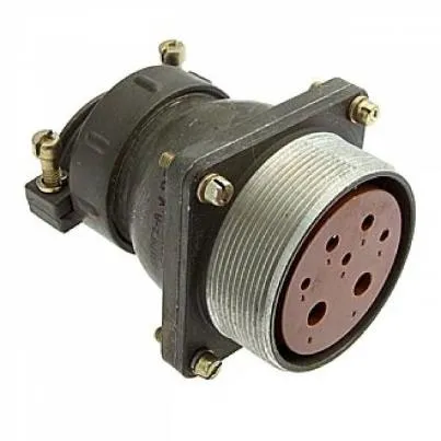Цилиндрический низкочастотный соединитель 2РТТ48БПЭ7Г25В пылебрызгозащищенный, предназначен для работы в электрических цепях постоянного и переменного  токов частотой до 3 МГц при напряжении до 850 В (амплитудное значение).