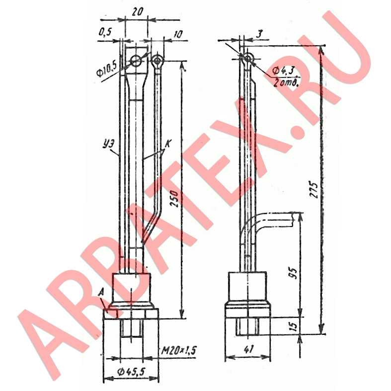 ТС160-6 - симметричный низкочастотный тиристор штыревого исполнения.