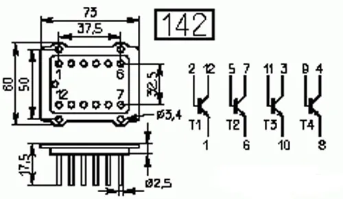 Транзисторная сборка 2ТС843А, состоящая из четырех переключающих кремниевых мезапланарных структур n-p-n транзисторов.